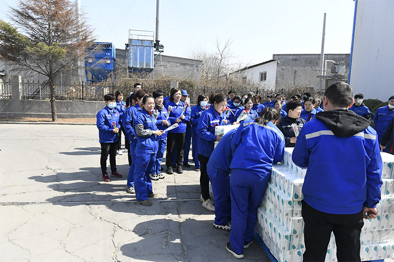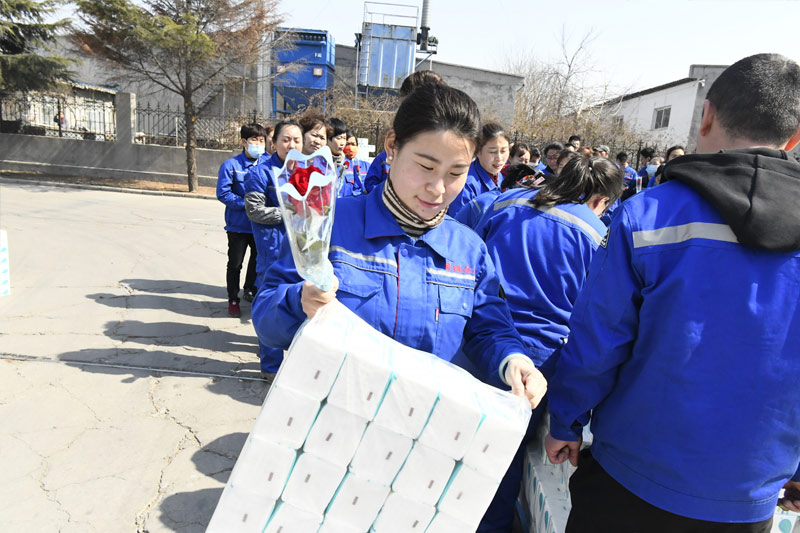 全廠職工送上祝賀,并集體留影,發(fā)放三八紀念品